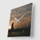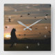 Whimsical Cat and Birds Square Wall Clock