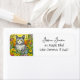Whimsical Cat and Flowers Return Address Label
