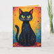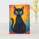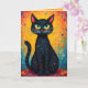 This captivating card features a charming black cat with mesmerising green eyes that seem to gleam with curiosity and playfulness. Its pink nose and delicate whiskers add a delightful touch, while the intricate patterns on its fur create a textured and artistic appeal. The backdrop bursts with energy and vibrancy, showcasing an enchanting mix of warm yellows and oranges alongside soothing blues, adorned with whimsical flowers and stars that infuse the design with a magical, dreamlike quality. Perfect for cat lovers and art enthusiasts, this card is blank inside and is ideal for personal notes. Alternatively, click "Personalise this Template" to easily add your own greeting.