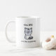 Coffee mug with a funny, sarcastic, and a little sassy cat that is clearly declaring itself the preferred choice for affection over the dog.