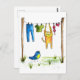 Whimsical Cat on a Clothesline Postcard