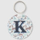 Whimsical Cat Pattern, Blue Grey Monogram Key Ring
