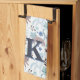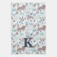 Whimsical Cat Pattern, Blue Grey Monogram Tea Towel