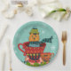 Whimsical Cat Sitting in a Teacup Christmas Paper Plate