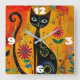 Whimsical Cat Square Wall Clock