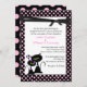 Cute wedding invitation done in a fun black, with pink polka dot background. A white text area over the background is decorated, with adorable cartoon graphics of two loving black cats, and a double black ribbon, at the top. All text is customisable to suit your wedding needs. Adorable cat fancier wedding invitation for the fun loving couple.