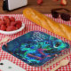 Whimsical Chameleon Blue Teal Floral Abstract Paper Plate