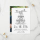 Announce your special day in style with the Whimsical Champagne Tower Photo Save the Date. This exquisite card features a chic black line art illustration of stacked champagne glasses, with champagne gracefully trickling down, set against a pristine white background. "Save the Date" is elegantly displayed in a black handwritten script, adding a personal and stylish touch. Below, your names, wedding date, and location are showcased, making this card uniquely yours. The back of the card displays your full-bleed vertical engagement photo.