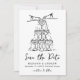 Whimsical Champagne Tower Handwritten Wedding Save The Date