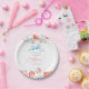 This whimsical bridal shower paper plate features a charming illustrated dusty blue and pink watercolor florals with playful bow.