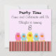 A delighful row of whimsical chicks in fun colours accent this kids birthday invitation. Customise with all of your party information as desired.