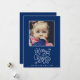 Whimsical Christmas Blue Calligraphy Swirl Photo Holiday Card
