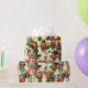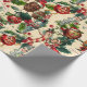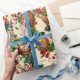 This vintage Christmas wrapping paper features a repeating pattern of whimsical, anthropomorphic characters. The design includes happy walnuts, smiling apples, cheerful candy canes, and playful pinecones or nutcracker-like figures, all wearing festive hats and set against a light, speckled background with holly and berries. The overall style is nostalgic and retro, perfect for a classic holiday look.
