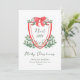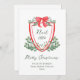 This chic, retro vintage style holiday card features a colourful, whimsical Christmas design. A bright red crest with a trendy red bow is surrounded by watercolor green botanical foliage, and modern handwritten script says "Noël" and "Merry Christmas."