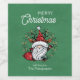 A cute, whimsical Christmas gnome on a green background, these personalised wine bottle labels are great to add to holiday gift-giving.