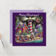 Vibrant colored letters, trees, holly and cancy canes in a cheerful message suitable for a non-religious holiday greeting. I especially liked it on the black background which made the design pop.