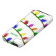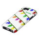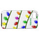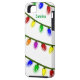 This custom iphone or other phone case has an image of a string of colourful, glowing Christmas lights wrapped around and around it. The lights are purple, orange, yellow, blue, green, and red.