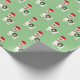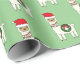 Whimsical modern hand illustrated llamas with santa hats and wreaths on green background.