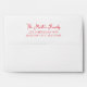 These beautifully designed custom envelopes will add a festive touch to your holiday correspondence! The return address features elegant red and green typography, personalised with your family name and holiday-themed address. The front showcases a hand-drawn red bow frame, perfectly complementing the "kindly deliver to" message in festive red script, evoking the warmth and joy of the holiday season. These envelopes are ideal for sending Christmas cards, holiday invitations, or special seasonal greetings, ensuring your mail stands out with a touch of class and holiday cheer. Personalise yours today for a stylish, custom holiday experience!