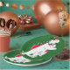 Fancy, cute and funny skating polar bears during the Christmas holidays. Great for all those guests and friends alike at your next shindig! Colourful green, white and reds adorn this paper plate. Don't forget the matching cocktail napkins for a truly great party.