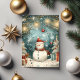 Celebrate the season with this charming Christmas card featuring an adorable snowman wearing a red and white striped scarf surrounded by a magical winter forest scene. Glowing lights hang from snow-covered branches, presents nestle in the snow, and delicate snowflakes drift through the air in this enchanting illustration. The soft, dreamy artwork with its beautiful teal and cream palette captures the playful spirit and wonder of Christmas. Perfect for spreading joy to family and friends. Fully customizable inside message.
