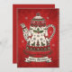 Whimsical Christmas Teapot With Holly, Reindeer, Trees, And Snowflakes In Festive Red Frame