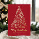 Send festive holiday cheer with this non-photo Christmas card featuring a whimsical hand-drawn tree of bows in shimmering gold foil on a bold red background. “Merry Christmas” is displayed in matching foil script, with personalisation available for your family name and year. The back includes space for your holiday message, creating a luxurious and timeless Christmas card design.