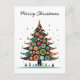 Whimsical Christmas Tree, Bright Colours, Holiday Postcard