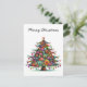 Whimsical Christmas Tree, Bright Colours, Holiday Postcard