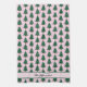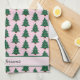 Personalised kitchen towel featuring cute, whimsical, christmas tree seamless pattern with pink ribbons.