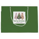 Minimalist watercolor christmas tree gift bag with playful leopard pattern in earthy green and gold. Personalise with your custom name for a stylish Christmas gift presentation.