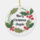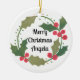 Whimsical Cjhristmas Wreath Personalised Name Ceramic Ornament