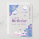 Invite your guests to a magical birthday celebration with this dreamy invitation design! Featuring fluffy clouds, stardust, a crescent moon, and watercolor galaxy textures in shades of purple, pink, and blue — this card is perfect for fantasy lovers of all ages. Elegant purple typography gives it a charming and modern touch.