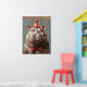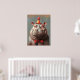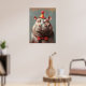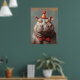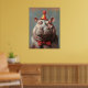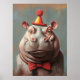 A humourous and charming portrait of a hippo dressed as a clown, featuring a red bow tie and a colourful party hat. Perfect for adding a playful touch to any space or creative project.