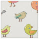Whimsical bird cartoon printed fabric by the yard. Decorated with cute pattern made of colourful bird illustrations on the natural white colour of the material in the background. Lovely print for kids related projects as well as anything colourful and nature related.