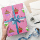 Red, Purple, Blue whimsical cute cupcake gift wrap for birthdays, baby showers or weddings.
