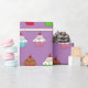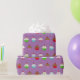 Red, Purple, Blue whimsical cute cupcake gift wrap for birthdays, baby showers or weddings.