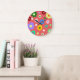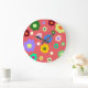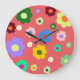 Whimsical Colourful Floral Retro, Cheerful, Preppy Large Clock