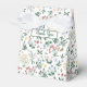 Whimsical colourful flowers wedding themed favour box with full floral print and hanwrtitten Thank You note in green