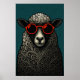 Bring a touch of playful sophistication to any room with our “Cool Curly Sheep” art poster. This high-quality print features a curly-wooled sheep sporting bold, round sunglasses against a rich teal backdrop. Meticulously illustrated with swirling cream-and-black linework, this design is equal parts modern graphic art and retro charm.