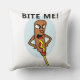 Whimsical Corn Dog with Mustard saying Bite Me Cushion