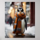 Transform your space into a whimsical winter escape with this enchanting poster featuring a cosy penguin navigating a snowy cityscape. The playful design captures the magic of winter in the city, with the adorable penguin infusing joy and urban adventure into your décor. Against the backdrop of glistening snow and city lights, this poster creates a magical atmosphere, making it a perfect addition to your seasonal home décor. Embrace the delightful spirit of winter in the city with the endearing presence of this whimsical and cosy penguin, turning any room into a snug haven amid the snowy urban landscape.