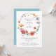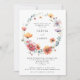 This design features a delicate watercolor wreath made of wildflowers in shades of blue, red, orange, violet, and gold. Perfect for spring and summer outdoor engagement parties.