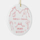 Personalised engagement ornament, designed in a romantic whimsical doodle style. Featuring hand-drawn details like champagne glasses, heart-shaped balloons, an engagement ring, and sweet bows with swirly ribbons, it’s a charming keepsake to remember your engagement year. Add your names and engagement date. All colours can be customised in the design tool, making it easy to match your style or holiday décor. A thoughtful gift for couples, fiancés, or as a special Christmas tree memory to treasure for years to come.