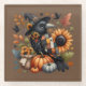 Whimsical Crow with Pumpkins and Sunflowers Glass Coaster