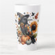 Whimsical Crow with Pumpkins and Sunflowers Latte Mug