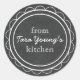 Trendy and cute personalised canning and baking stickers with a whimsical white scallop design on a faux black chalkboard background. Pretty from the kitchen of labels to put on baked and canned goods.