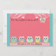 COLOR PALETTE: Pastel hues in azure, aqua blue, turquoise, light pink, coral, hot pink, and mustard butter yellow. DESIGN COLLECTION: Matching Baby Shower or Newborn Baby Gift Thank You Notes. Cool trendy owls with dot patterns, swirls, flower and modern shaped leaves on the leaf swirl flourish design are graphically designed by Audrey Jeanne Roberts. The owls are perched on the fun leaf swirl patterns with leaves, polka dots and a dotted border. On one side is the text, "Look Whooooo's having a baby girl!" and on the reverse side is your date, time and location of your party. On the reverse side is a whole group of hoot owls gathered together with one hanging upside down on a swirly flourish. To change out the photograph or text, simply use the easy template fields to customise. There is a complete set of products created to match.
