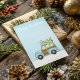 The wood-sided car heading home from the Christmas tree lot. This is a great design for any seasonal greeting or transfer onto any product with a sky blue background and a snow-covered ground. Whimsical, colourful, fun design for anyone.