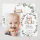 Whimsical Cute Owl Rustic Greenery Birthday Photo Invitation